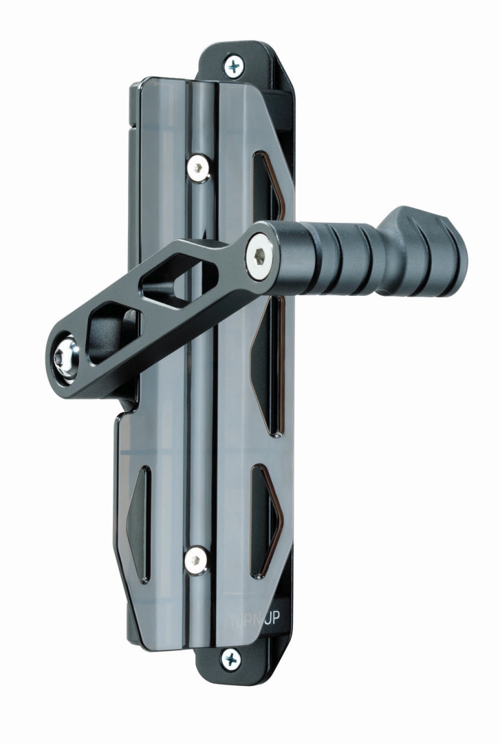 Ten elegancki uchwyt do montażu roweru na ścianie pozwala na nietuzinkowe przechowywanie jednośladu. Odchyla się w lewo lub w prawo w celu optymalizacji miejsca. Formowany gumowy pasek utrzymuje przednie koło zapobiegając jego skręcaniu. Zawiera wszystkie elementy montażowe plus formowaną wkładkę na tylne koło aby zapobiec śladom opon na ścianie. Pasuje do standardowych rowerow szosowych i MTB łącznie z rowerami 29“.